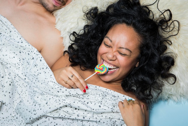 You may run into the same problem and find that you keep slipping off, but your chances may be better, Astroglide's resident sexologist Jess O'Reilly tells Bustle. "You can control the movement and reduce the amount of thrusting they do (which often leads to slippage)," she says.